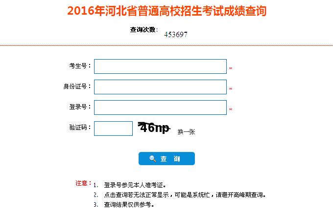 2016年河北高考成绩查询入口已开通,6月23日0时后,考生可登录河北省教育考试院网站查询高考成绩,或者点击下面的链接进入成绩查询: