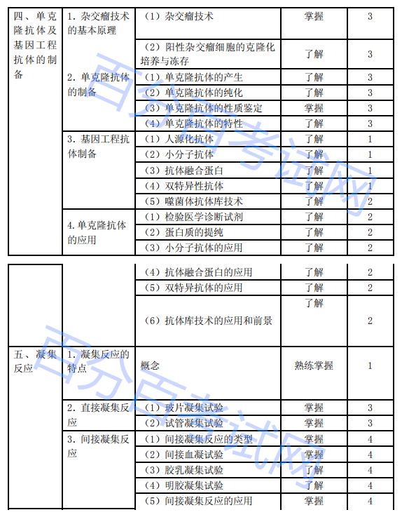 | 3.临床免疫学与免疫检验 | (1)免疫学技术的发展 | 了解 | 1 | |