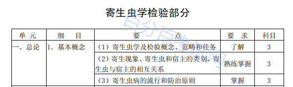 | 3.绦虫 | (1)概述 | 了解 | 1 | |