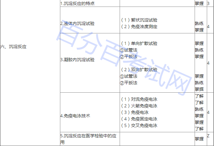 | 测 | (3)Ⅲ型超敏反应免疫学检测 | 熟练掌握 | 4 | |
