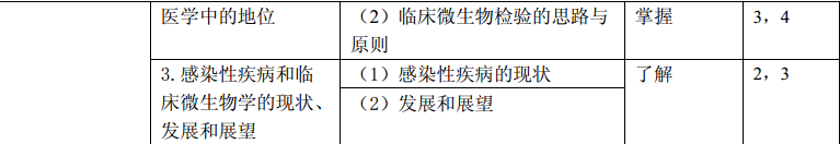 | (4)微生物学检测 | 熟悉掌握 | 3,4 | ||