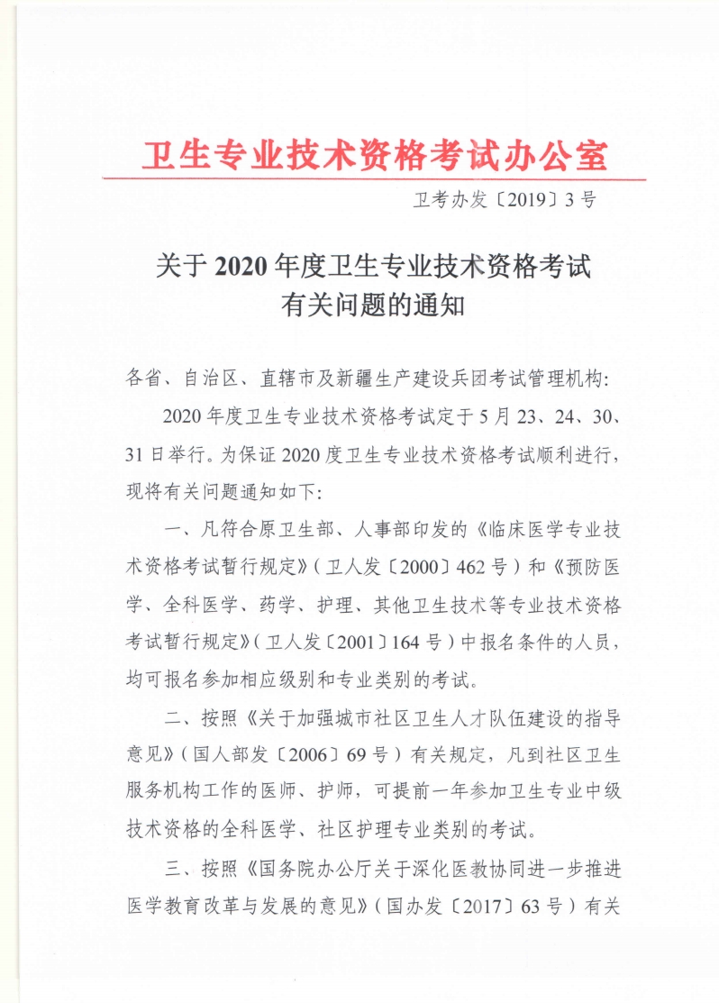 小编刚刚从中国卫生人才网了解到,2020年医学检验职称考试时间确定了!根据通知内容,2020年医学检验职称考试时间为5月23-24日、5月30日-31日,具体通知内容如下: