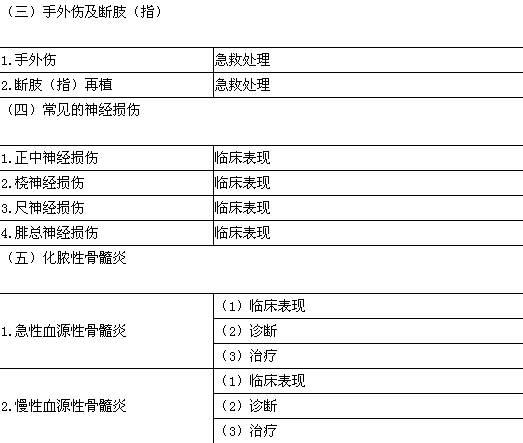 | 2. 锁骨骨折 | (1)临床表现 (2)诊断 (3)治疗 |