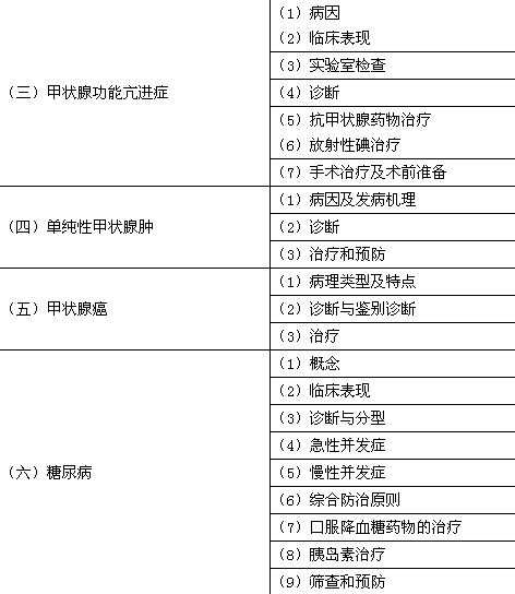 | 1.水和钠的代谢紊乱 | (1)病因和分类 (2)临床表现 (3)治疗 |