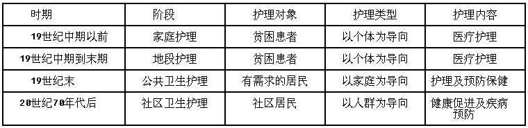 10.出现于19世纪末,向有需求居民提供医疗护理和预防保健服务,此期为