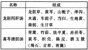 正确答案:C 解题思路:龙胆泻肝汤、蒿芩清胆汤的药物组成见下表。